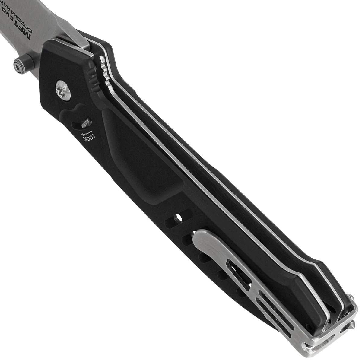 - MF1 EVO D Black Aluminum, Satin is the EVOlution of the popular MF1 model. Large, sturdy tactical folder. Blade made of high-quality Böhler M390 powder steel, steel frame and aluminum grips. Liner lock. A great, reliable tool!