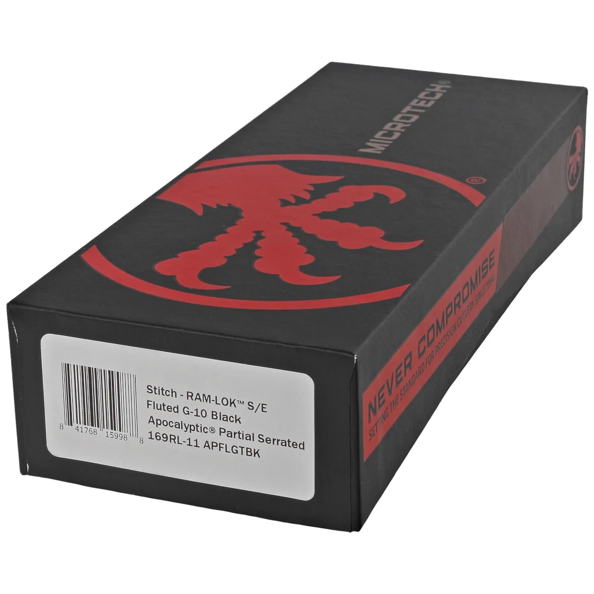 Product name: Stitch Ram-Lok™ S/E Fluted Black G10, Apocalyptic® Partial Serrated