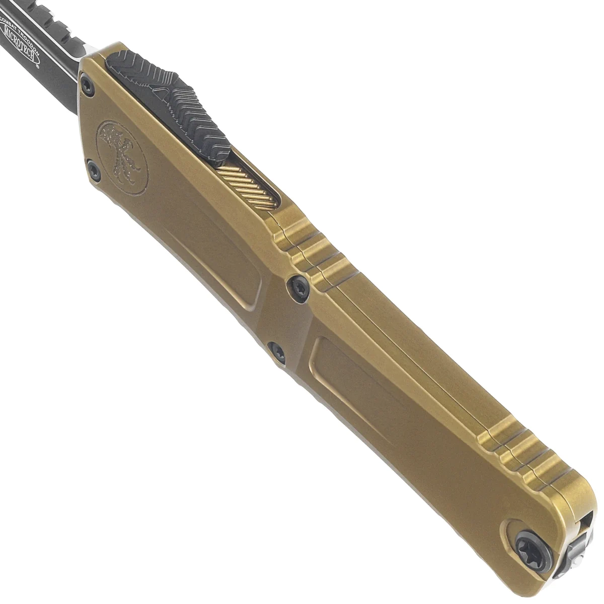 Combat Troodon Gen III Interceptor Signature OD Green Aluminum, Black the largest of the automatic knives, is the pinnacle of precision engineering and tactical efficiency in the field of OTF (Out The Front) knives. Built for a wide range of utility applications, it boasts a 25% larger size compared to the flagship Troodon. Precision-crafted, equipped with a sophisticated and extremely fast retractable mechanism, and a new type of razor-sharp blade - Interceptor. 100% manufactured and assembled in the USA. Designed by Anthony Marfione, knifemaker and owner of Microtech Knives.