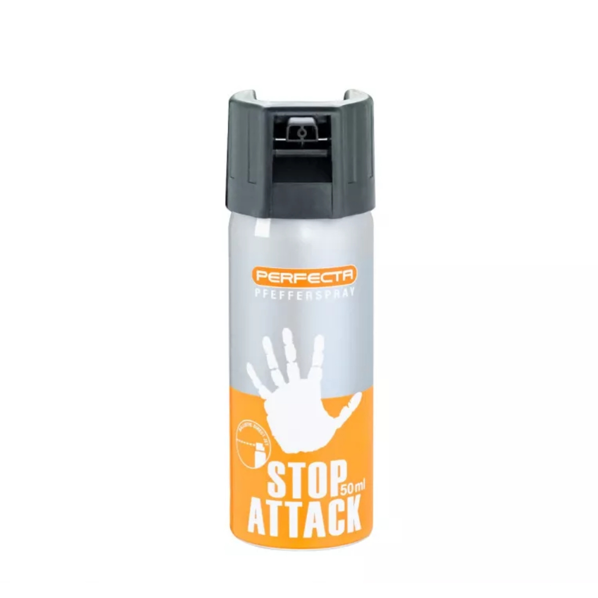 Perfecta Stop Attack Stream 50 ml is a highly effective pepper spray in a concentrated stream form, offering precision and an extended range. With a potent capsaicin concentration and a reach of up to 5 meters (16 feet), it serves as a reliable personal defense tool.