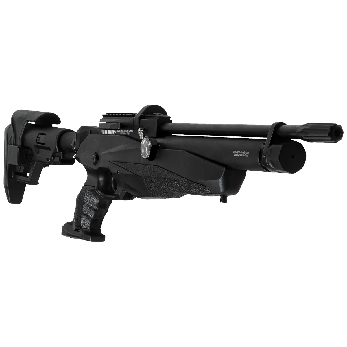 Reximex Tormenta Lite – a modern PCP air rifle housed in a compact, tactical stock with a pistol grip made from advanced polymer. This latest edition of the popular Tormenta series offers an even more affordable price, featuring a tactical AR-style telescopic stock with an adjustable cheekpiece. The rifle is equipped with a Side Lever cocking mechanism, a lightweight aluminum air cylinder, and a precision-rifled barrel. Available in calibers: .177 (4.5 mm), .22 (5.5 mm), and .25 (6.35 mm).