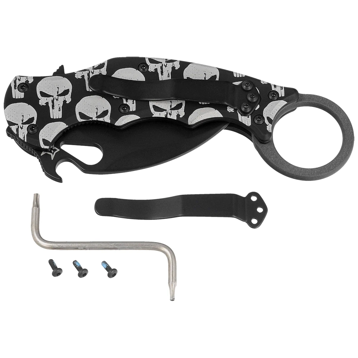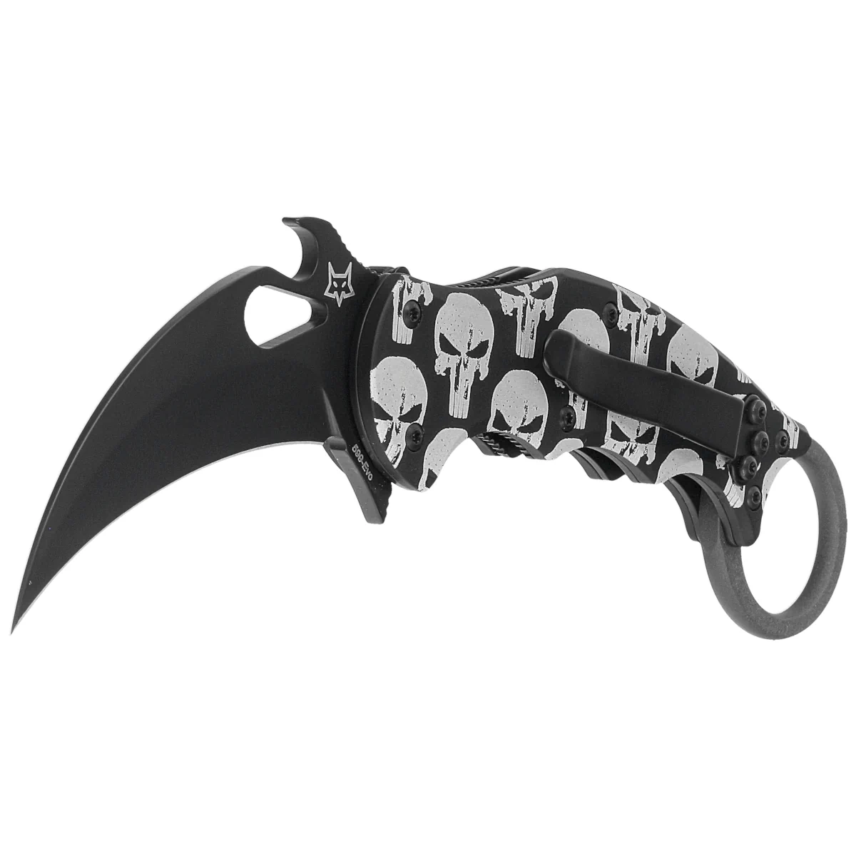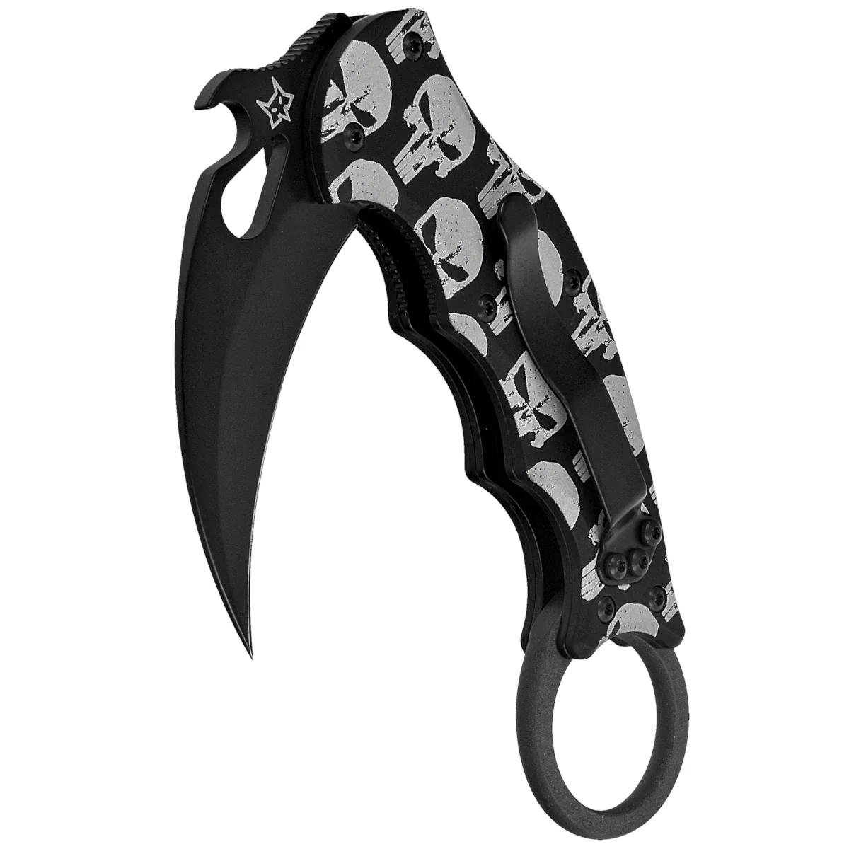 - The Skull Karambit Black Aluminum, Black Folding Karambit for everyday use and for duty. Black coated blade with hawk bill profile made of Bohler N690Co steel, comfortable aluminum handle. Three methods for quick opening of the blade and a proven lock!