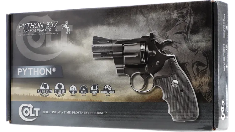 • Colt Python 2.5" 4.5 mm BB CO2 is a realistic replica of the .357 Magnum. Lightweight, solid construction, dual ammunition system, precise aiming and a comfortable grip provide a great shooting experience.