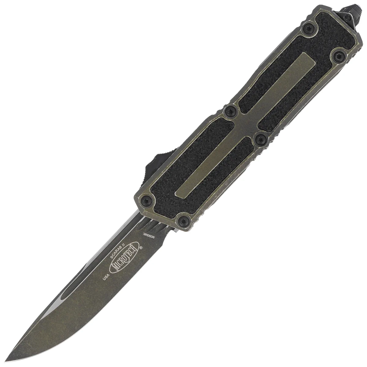 Microtech Scarab II Gen III S/E OTF Knife Weathered Grenade Green Aluminum, Weathered Grenade Green M390MK by Tony Marfione (1278-1WGG)