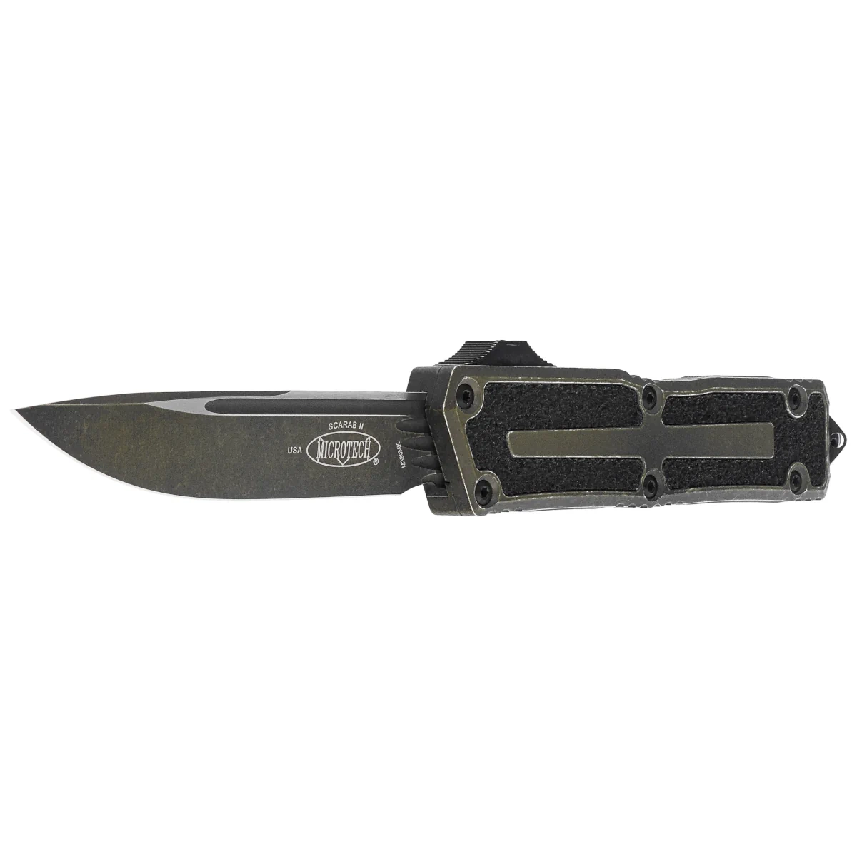 Scarab II Gen III S/E Weathered Grenade Green Aluminum, Weathered Grenade Green is the pinnacle of automatic tactical knives, drawing inspiration from the original Microtech Ultratech design. Built to withstand the toughest conditions, the new Scarab II is the best choice for intensive use. Retaining the design features of its predecessor, it sets a new standard for OTF (Out The Front) technology.