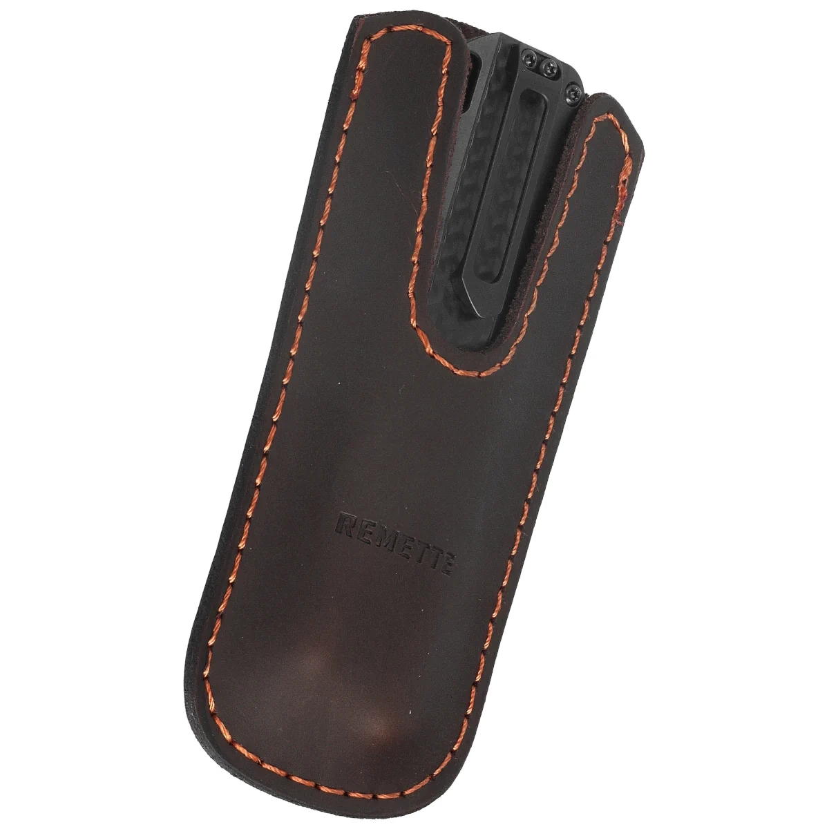 Sharp Leopard Black DLC Titanium, Black DLC opening Intuitive, folding knife from the up-and-coming manufacturer Remette Knives, a masterpiece of design engineering. Gravity OTF (Out The Front) Blade extends forward thanks to the force of gravity. Based on the design of the Luftwaffe gravity knife, commonly known as the German paratrooper knife. The intuitive extension / retraction of the blade with one hand (by gravity) and the best materials such as Böhler M390 steel blade and titanium handle, perfectly combined with the unrivaled quality of the Remette! brand.