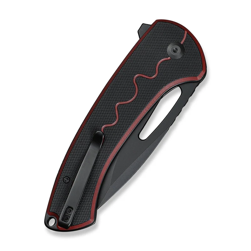 Squiggy Burgundy/Black G10, Black is an EDC folding knife, which combines utilitarian reliability with eye-catching aesthetics. The contrasting handle made of G10 material with a wavy pattern not only adds character, but also increases comfort and grip security. Blade made of 9Cr18MoV stainless steel provides durability, corrosion resistance and good sharpness retention - ideal for everyday tasks. Thanks to the flipper and thumb hole, the knife opens quickly and intuitively with one hand. The button lock mechanism guarantees safe use without backlash. The Handle has been contoured for long-lasting comfort, even during intensive use. The double-sided tip-up clip allows comfortable carrying by both right- and left-handed people. Squiggy is the choice for those who are looking for a functional, stylish and uncompromising EDC knife.