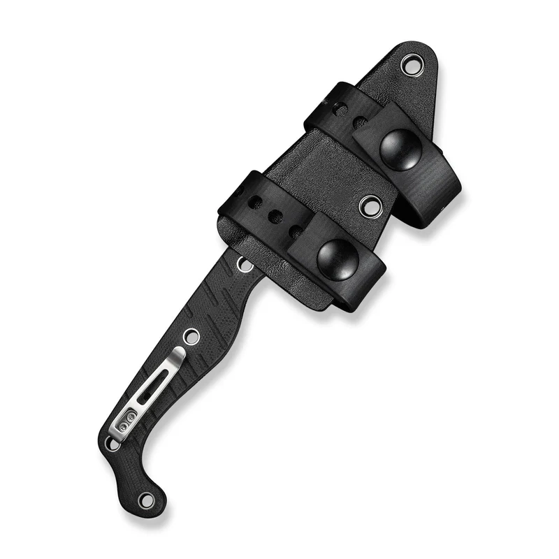 Handle - made of durable G10 composite , known for its resistance to off-road conditions and excellent grip. The textured surface aids grip with gloves or a wet hand, while the ergonomic profiling increases comfort for extended use. The 9mm thickness provides grip stability, and a cord hole allows for paracord attachment or additional security. Equipped with a double-sided clip, which allows different carrying configurations. It comes with a Kydex sheath - resistant to wear, weather and moisture, with straps for trouncing to the belt. This Handle is the perfect combination of functionality, durability and comfort, providing a reliable base for users looking for a reliable fixed blade knife.
