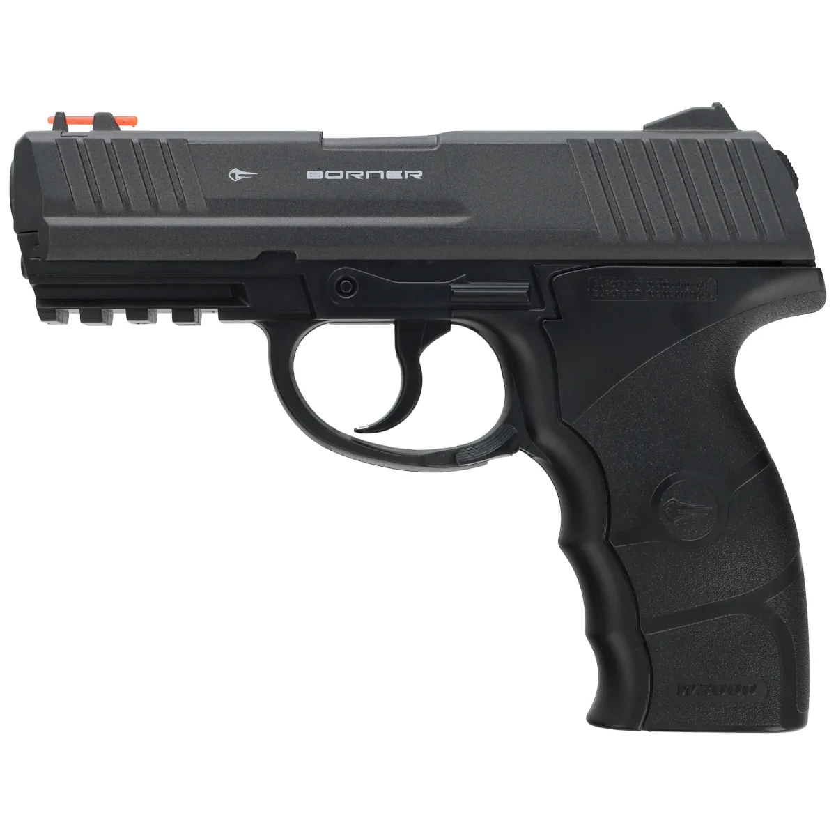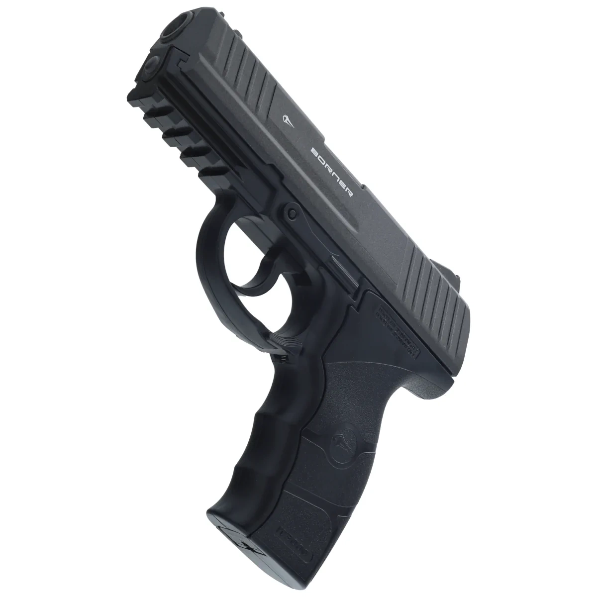 Borner W3000 4.5 mm CO₂ Air Pistol is a durable and realistic replica of the Italian semi-automatic Beretta 90-Two. Its solid construction of metal and ABS ensures excellent durability and user comfort during recreational shooting sessions.