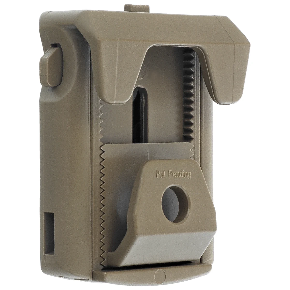 UBC-01 - fastening for crimp / sliding belt in the range 50 - 93 mm, adapted to police belts 60 mm (duty). The type of handle allows you to fasten / unfasten the belt very quickly. This operation can be done with one hand, there is no need to unfasten the belt. UBC-01 allows you to rotate the full 360 degrees of attached equipment - infinitely variable angle settings of the conveyed equipment (blocked in one of 16 defined positions).