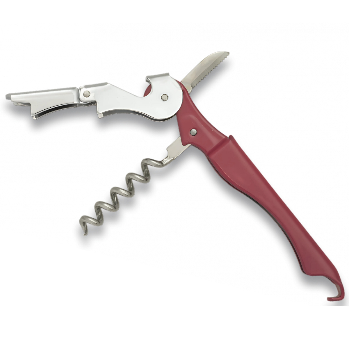 Corkscrew Top Cutlery Maroon Metal, Inox (21128)