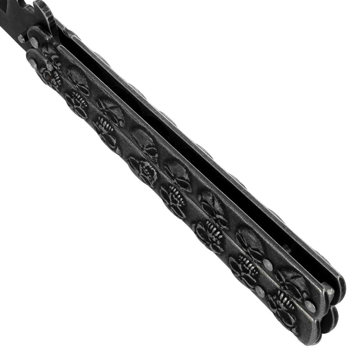Martinez Albainox Balisong Skull Knife Gray Steel, Stonewashed 3Cr13Mov (02184)