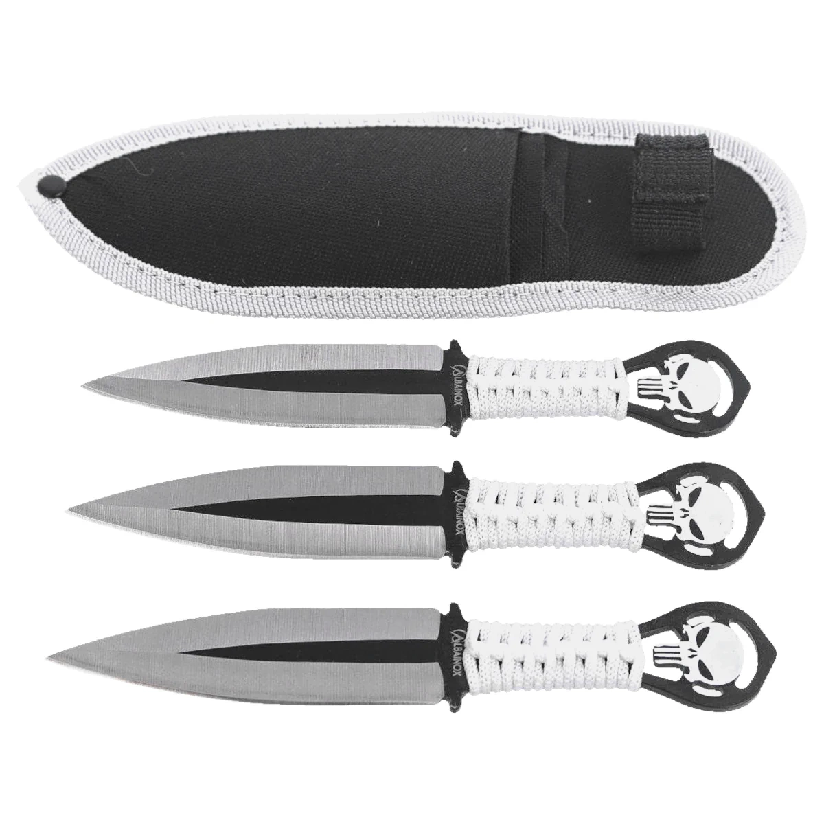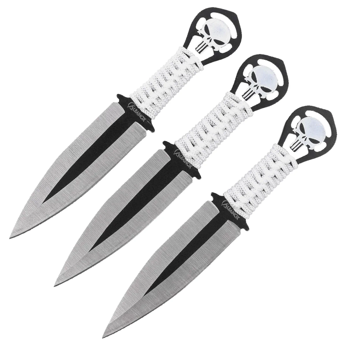 - Skulls Set 3 pcs White Cord, Satin 3Cr13Mov - a set of dart throwing knives with full tang construction, made of stainless steel and wrapped in white paracord. Comes with a nylon carrying sheath with compartments.