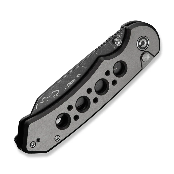 Pragma Prime Gray Aluminum, Damascus is a modern EDC folder, combining minimalist styling with high functionality and precision performance. The slim design line and careful choice of materials make this knife perfect for everyday urban and off-road tasks, offering the user full control, reliability and lightweight use. Blade with Wharncliffe profile , made of Damascus steel provides high corrosion resistance and long-lasting sharpness, while Acid Etched finish highlights the patterns on the blade. The hardness in the 58-60 HRC range allows for long-lasting use without sacrificing cutting performance. The Handle is made of anodized aluminum, combining high wear resistance with low weight and full structural rigidity. Subtle milling and a series of holes on the surface improve grip and increase grip security during intensive work. Ergonomic design and rounded edges promote comfort even during prolonged use. Smooth operation is responsible for the opening mechanism based on the thumb stud, supported by the button lock mechanism and ceramic bearings, ensuring fast and safe unfolding of the blade with one hand. The model is equipped with a double-sided tip-up clip, adapted for comfortable carrying by right- and left-handed users. The C24067-DS1 is a practical, lightweight and precise tool for demanding users who value the balance between aesthetics, durability and everyday functionality.