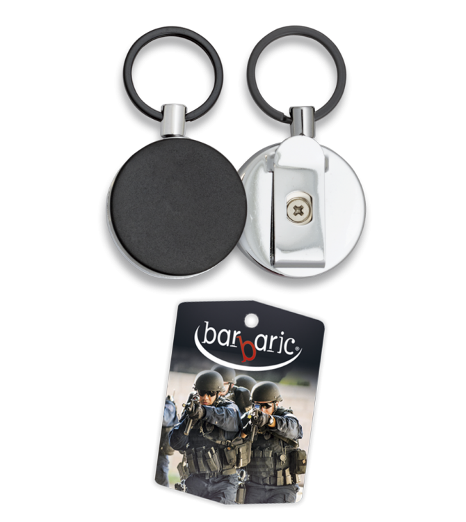 - Barbaric Retractor with clip Black PVC / Chrome Steel, 70 cm (09921) - compact EDC accessory with 70 cm long expandable cord, durable PVC and metal housing. Ideal for organizing equipment in the field and on a daily basis.