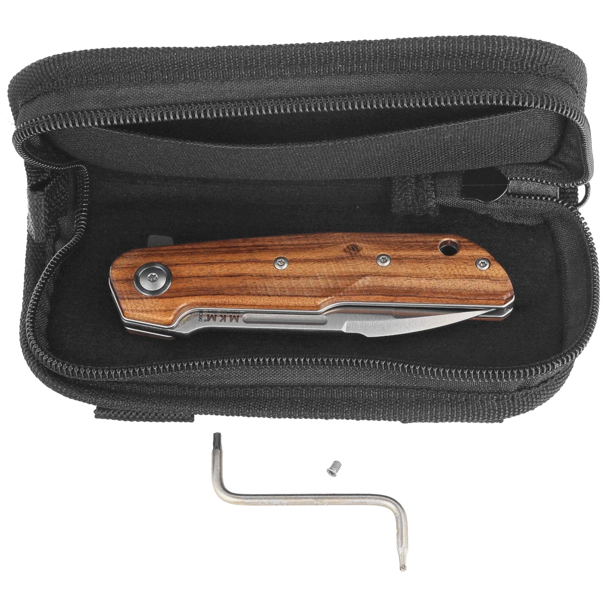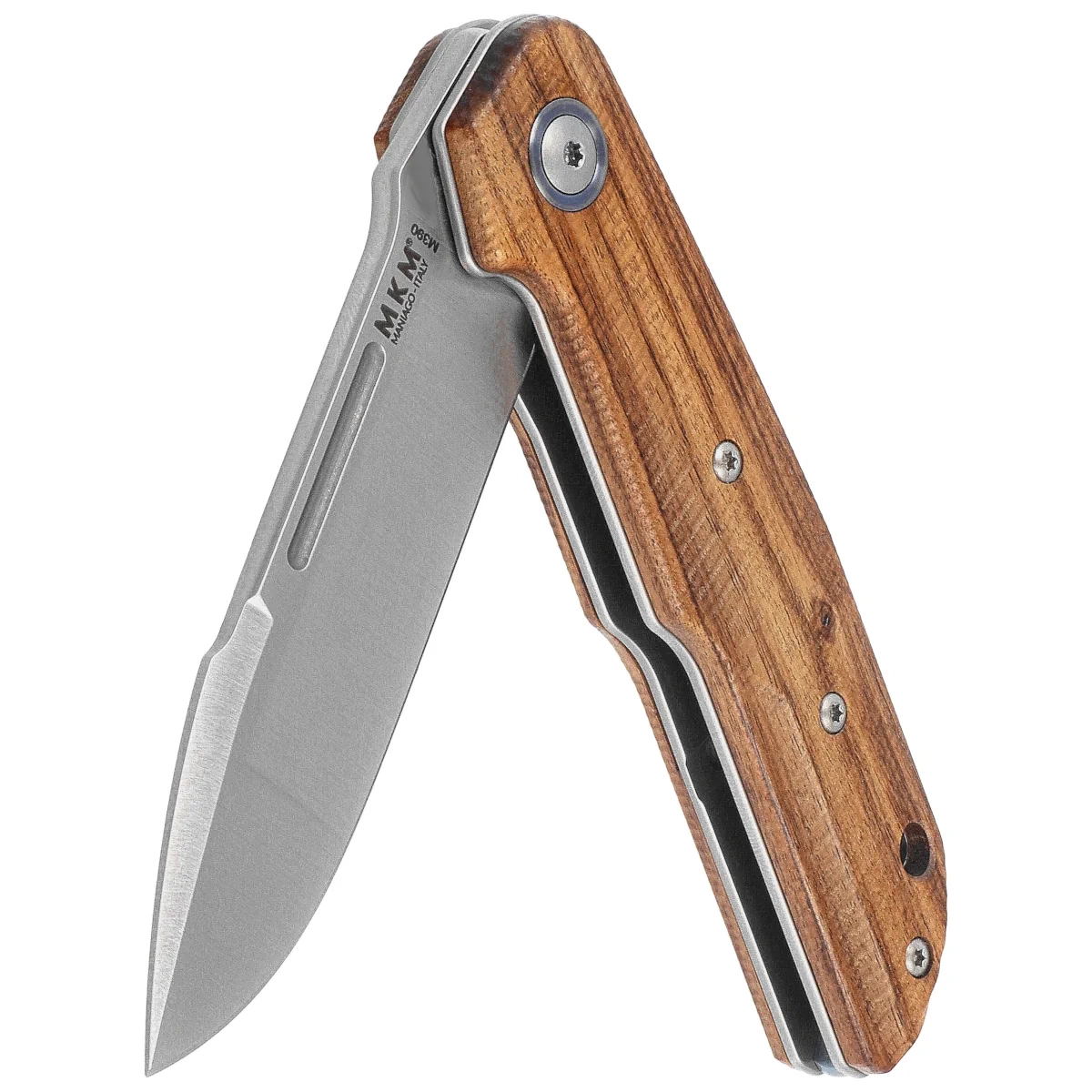 Clap Santos Wood, Satin M390 is an elegant premium EDC folder designed by Bob Terzuola - one of the most influential figures in the history of modern tactical knives. This model combines classic form with the precision of Italian craftsmanship and the use of high-end materials. Manufactured in Maniago by the MKM brand , it is a combination of refined aesthetics and full utility functionality - ideal as an everyday tool for discerning users with refined taste. Blade is made of Böhler M390 powder steel, valued for its corrosion resistance, long-lasting sharpness retention and excellent edge stability. A satin finish was applied, which not only emphasizes the elegant character of the knife, but also makes it easy to keep the blade clean. The opening mechanism is based on ball bearings, allowing smooth unfolding of the blade using a flipper, or - after its removal - by opening with both hands in the classic style. Handle is made of natural Santos Wood, whose texture and colors give the whole a warm, noble character. Rounded edges improve ergonomics and grip comfort, while a removable titanium clip allows for discreet carrying without disturbing the minimalist lines of the design. The MKM Clap is for lovers of gentleman's folder knives, who expect a combination of style, durability and the highest precision of workmanship - both in everyday use and in the collection.