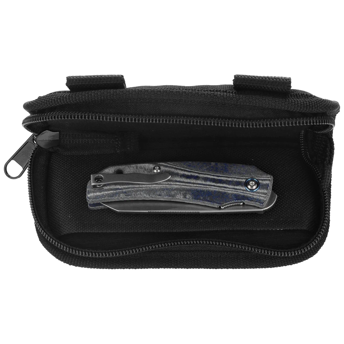 Handle - made of field-resistant composite Canvas Micarta, which is formed by soaking layers of cotton fabric in epoxy resin. This lightweight and durable material provides good grip, even with wet hands, and high resistance to abrasion, temperature and water. Grips are mounted on steel liners, allowing the use of liner lock, which guarantees safety and rigidity of construction. Gently rounded edges, subtle milling and a contoured backspacer improve ergonomics and increase grip comfort in any position. The stainless steel deep-carry clip , mounted in the tip-up position with the option of flipping to the other side, provides discreet knife carrying and full ambidextrousness. The whole is completed by the front flipper type opening mechanism , based on ball bearings, which offers a fast and quiet opening of the blade. The Handle of the MK IC-GG model is a combination of ergonomics, lightness and aesthetics - an ideal base for a new generation EDC folder.