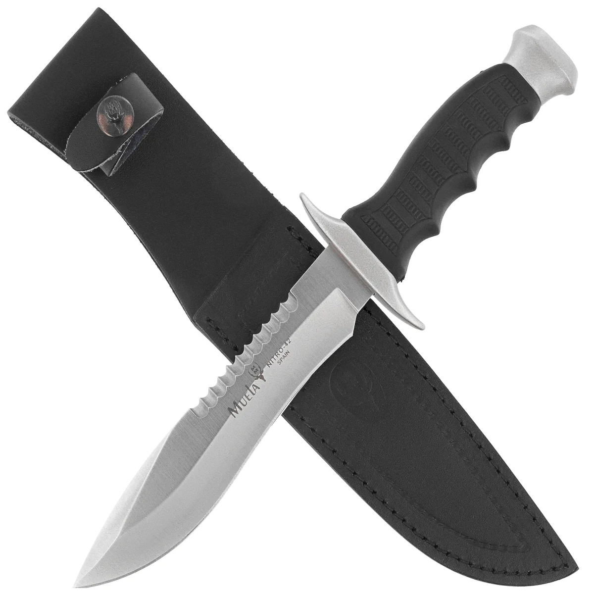 • Muela 85-162 a full-sized fixed-blade knife with a Bowie profile. Crafted from Nitro‑42 stainless steel, coated with a protective black finish, it features a durable handle made of rubber and zamak. Engineered for extreme field and tactical applications.