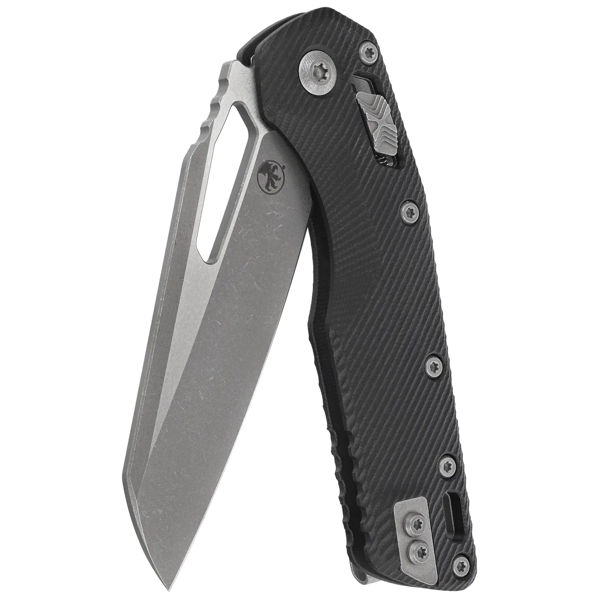 Handle – crafted with the highest precision on CNC machines from G10 composite. For improved grip, the handle surface features a deeply milled, three-dimensional 3D Fluted, providing a secure and stable hold. The wide lock slider with Microtech’s signature stepped texture (X Button) ensures confident and comfortable operation. The handle scales are connected with a solid aluminum backspacer. The dual-position (right/left) clip allows for discreet tip-up carry. Above the clip is a lanyard hole, suitable for attaching a safety or decorative lanyard.