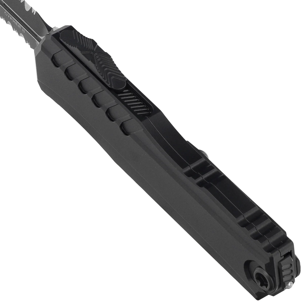 Microtech Cypher II D/E OTF Knife Black Aluminum, Tactical P/S M390MK by Deryk Munroe and Tony Marfione (1242-2T)