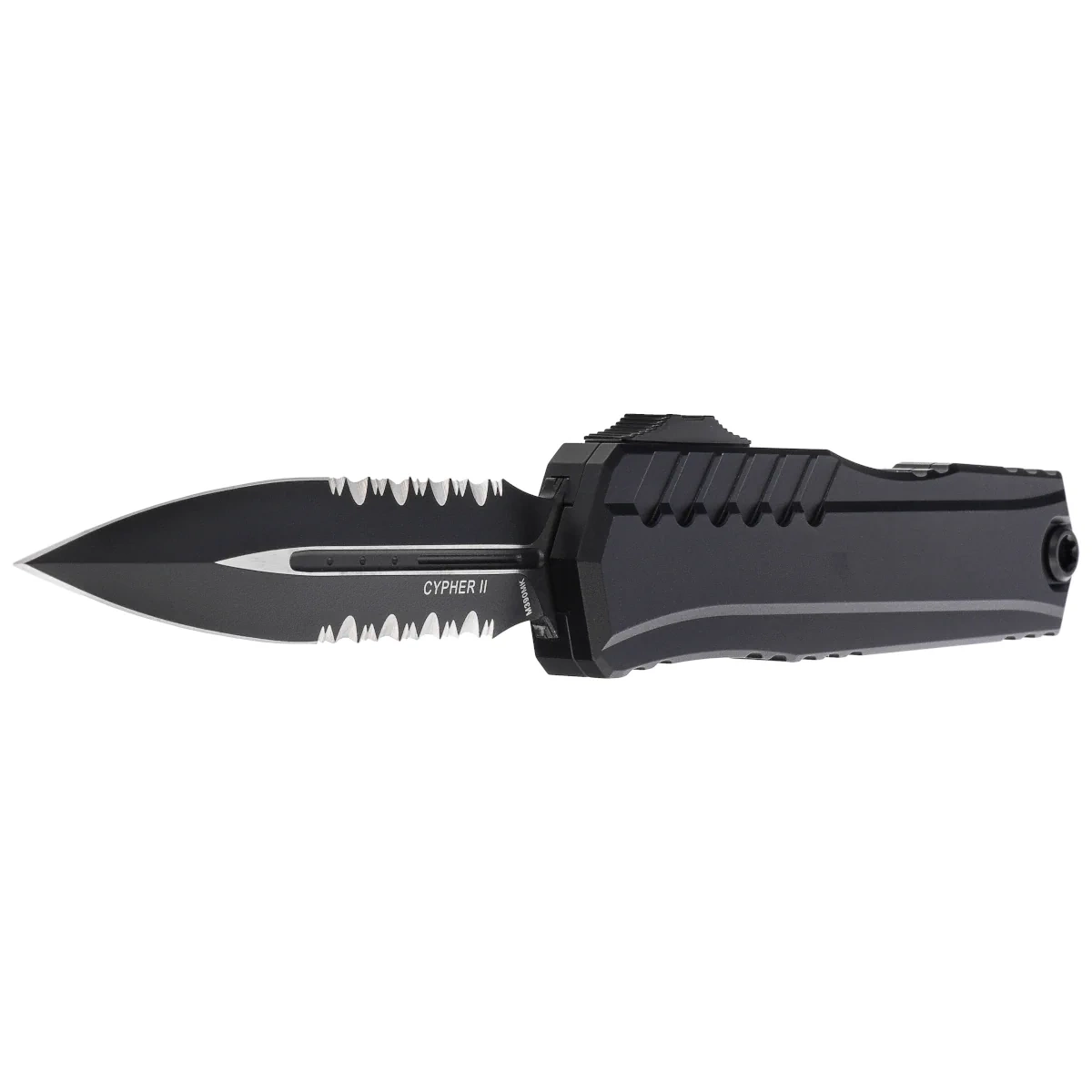 • Cypher 2 D/E Black Aluminum, Tactical P/S the result of a collaboration between Deryk Munroe and Tony Marfione has undergone a comprehensive upgrade. An innovative dual blade drive mechanism provides smoother operation than ever before in OTF knives.