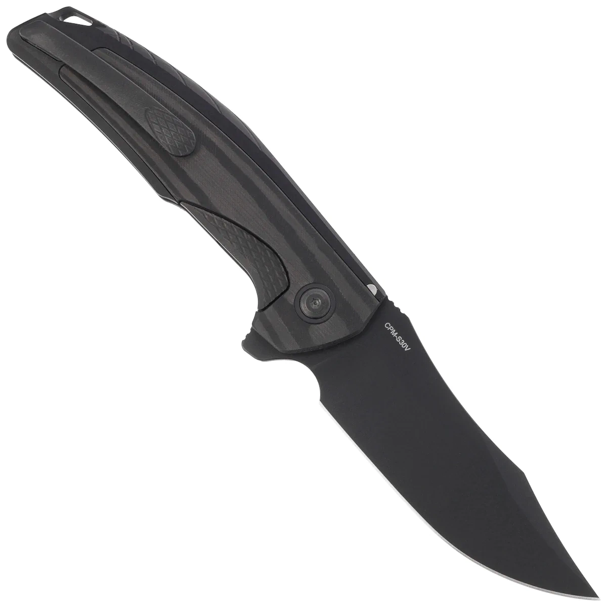 - The Jack Jr. Black Aluminum, Black DLC, lightweight and precise EDC folding knife with CPM S30V steel clip point blade and monolithic aluminum handle with carbon fiber inlay. A combination of elegance, modern technology and perfect workmanship.