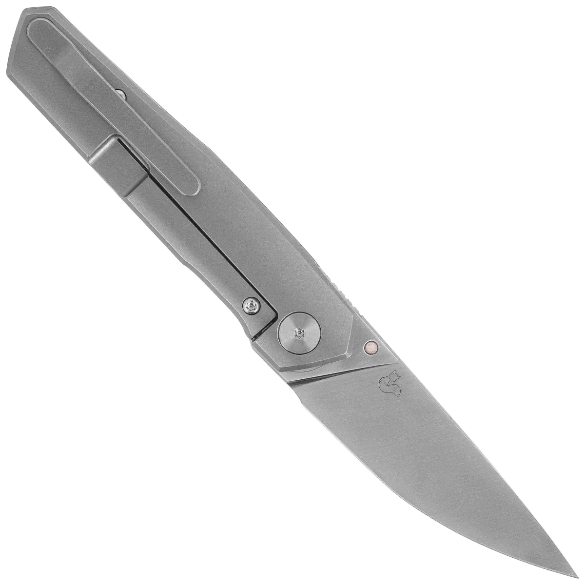 • VK-Kuze Grey Titanium, Satin - an elegant and functional EDC folding knife, designed by Vulpex Knives, with a premium CPM MagnaCut steel blade and a minimalist handle made of durable titanium. A perfect combination of aesthetics, precision and durability.