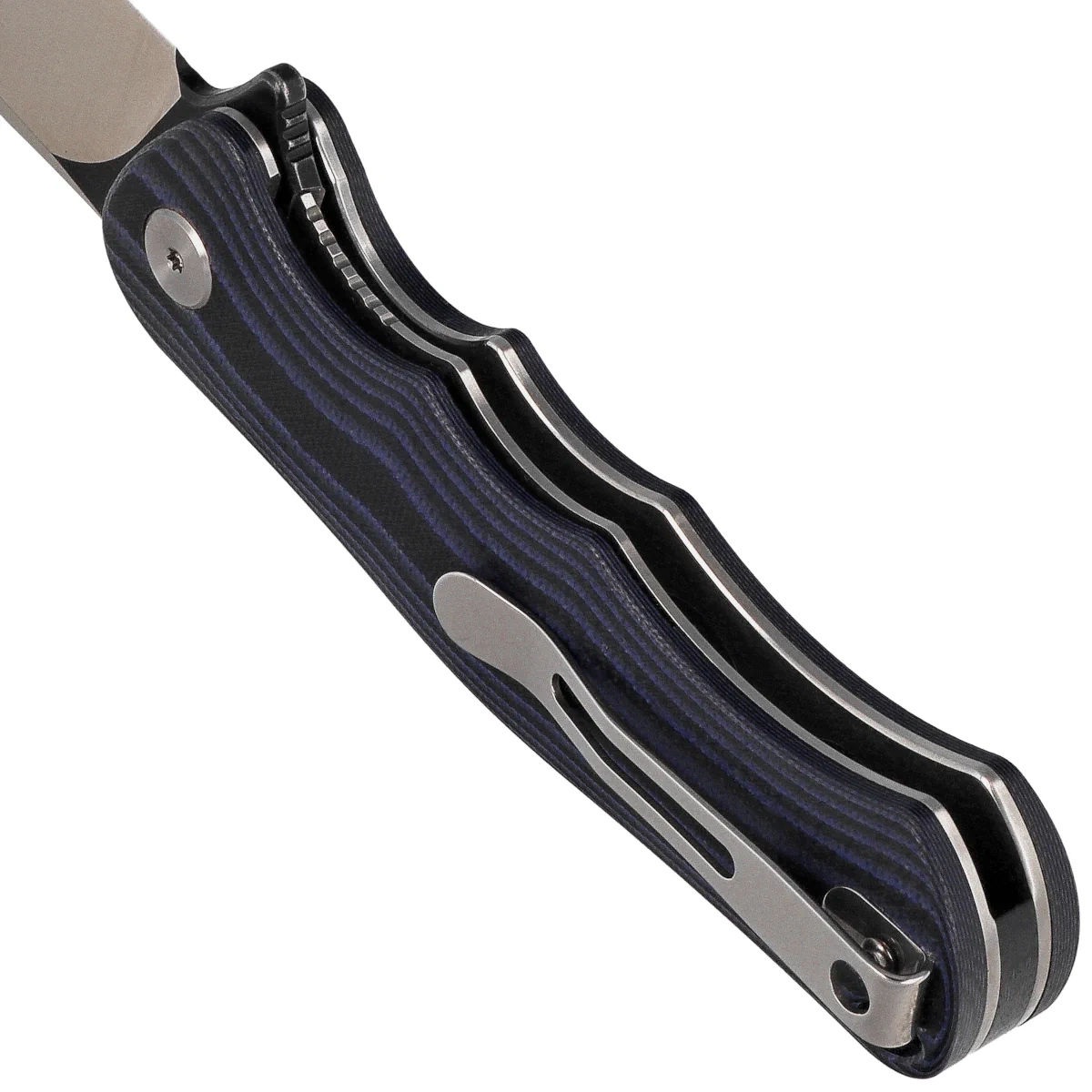• Bobcat Black / Blue G10, Black Stonewash / Satin When looking for a good knife, the most important thing is its ease of use. The Bobcat has all the makings of a great EDC knife at an affordable price. Wide blade made of D2 tool steel, G10 handle.