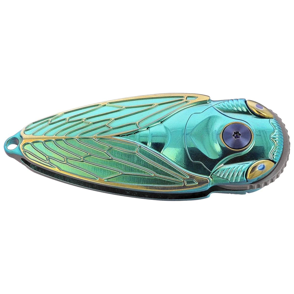 - Cicada-GG Green / Gold Titanium, Bead Blasted - a modern premium folding knife from Rike Knife, with an M390 steel blade and milled titanium handle. Biomechanical form, collectible character and technical precision in one design.