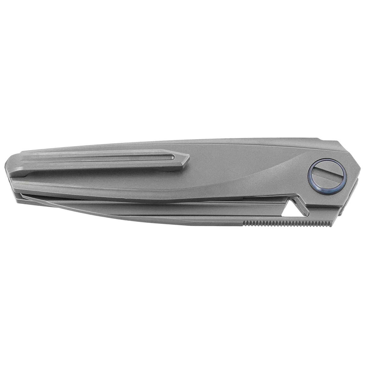 The Baidi S Titanium/Carbon Fiber, Bead Blasted from Rike Knife is a design created for users who expect uncompromising precision and ergonomics tailored for everyday use. The centerpiece of the design is a 6AL4V titanium skeleton, providing excellent rigidity with minimal weight. The asymmetrical grips decorated with Carbon Fiber inlays not only enrich the styling, but also strengthen the grip and reduce the weight of the design. Blade with Sheepsfoot profile is made of Böhler M390 powder steel, renowned for its exceptional edge durability and corrosion resistance. A full flat grind ensures smooth cutting and excellent penetration properties, while a bead blasted finish reduces reflections and increases resistance to micro-scratching - especially in field or workshop conditions. The opening mechanism is based on a front flipper and ball bearings, which ensures immediate blade response and smooth, play-free operation. A liner lock with easy access is responsible for locking. The deep carry clip allows the knife to be carried discreetly in the pocket, without affecting ergonomics. Baidi S is a model for people who expect durability, functionality and the highest work culture from a tool.