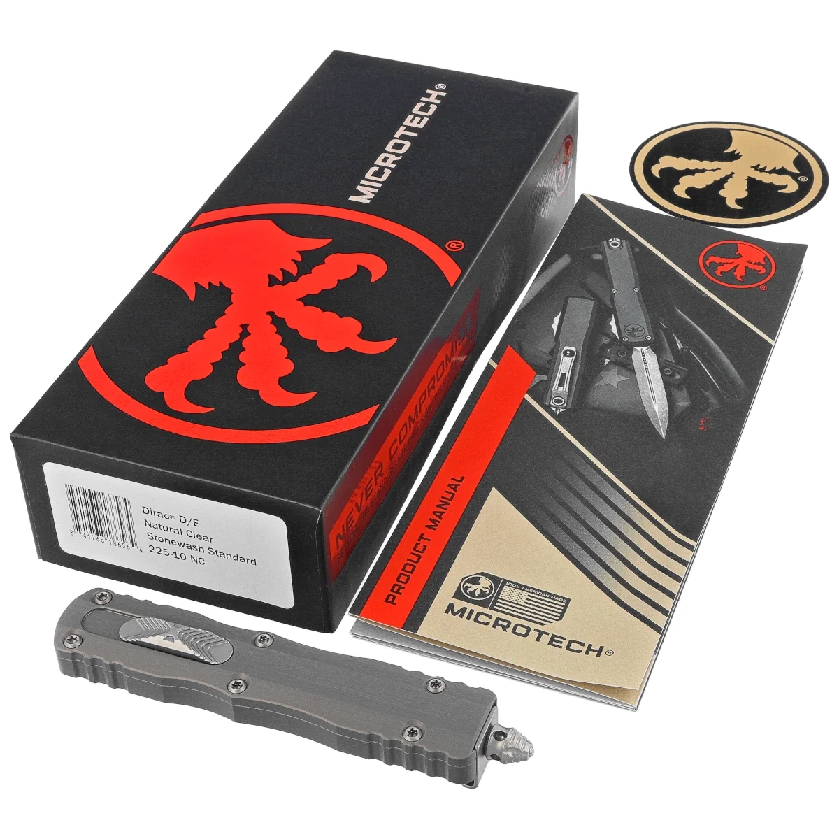 Microtech Dirac D/E OTF Knife Natural Clear Aluminum, Stonewashed M390 by Tony Marfione (225-10NC)