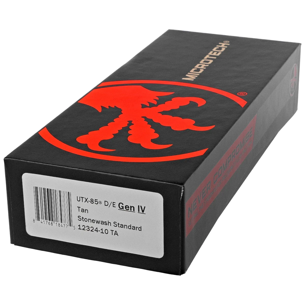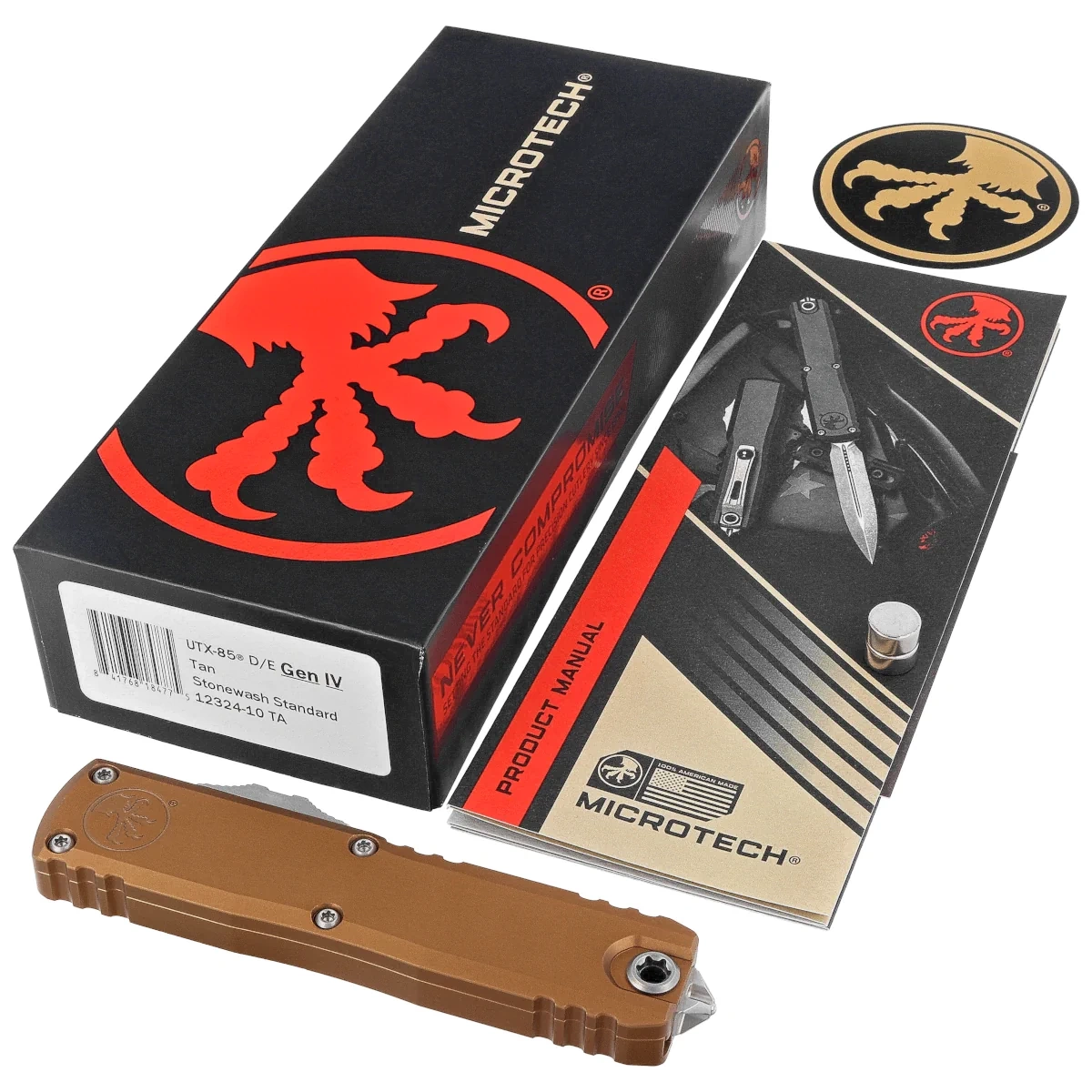 - UTX-85 D/E Gen IV Tan Aluminum, Stonewashed is a compact OTF automatic knife from the UTX-85 series. Designed for EDC applications, it retains all the advantages of larger models. Operating in D/A mode, it features a fast blade extension mechanism.
