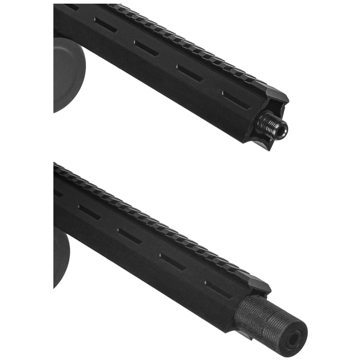 The precision rifled barrel measures 21.65" (550 mm) and features a choked muzzle for superior projectile stabilization and accuracy. The barrel is threaded with a 1/2" UNF external thread, allowing for the attachment of a suppressor or muzzle brake.