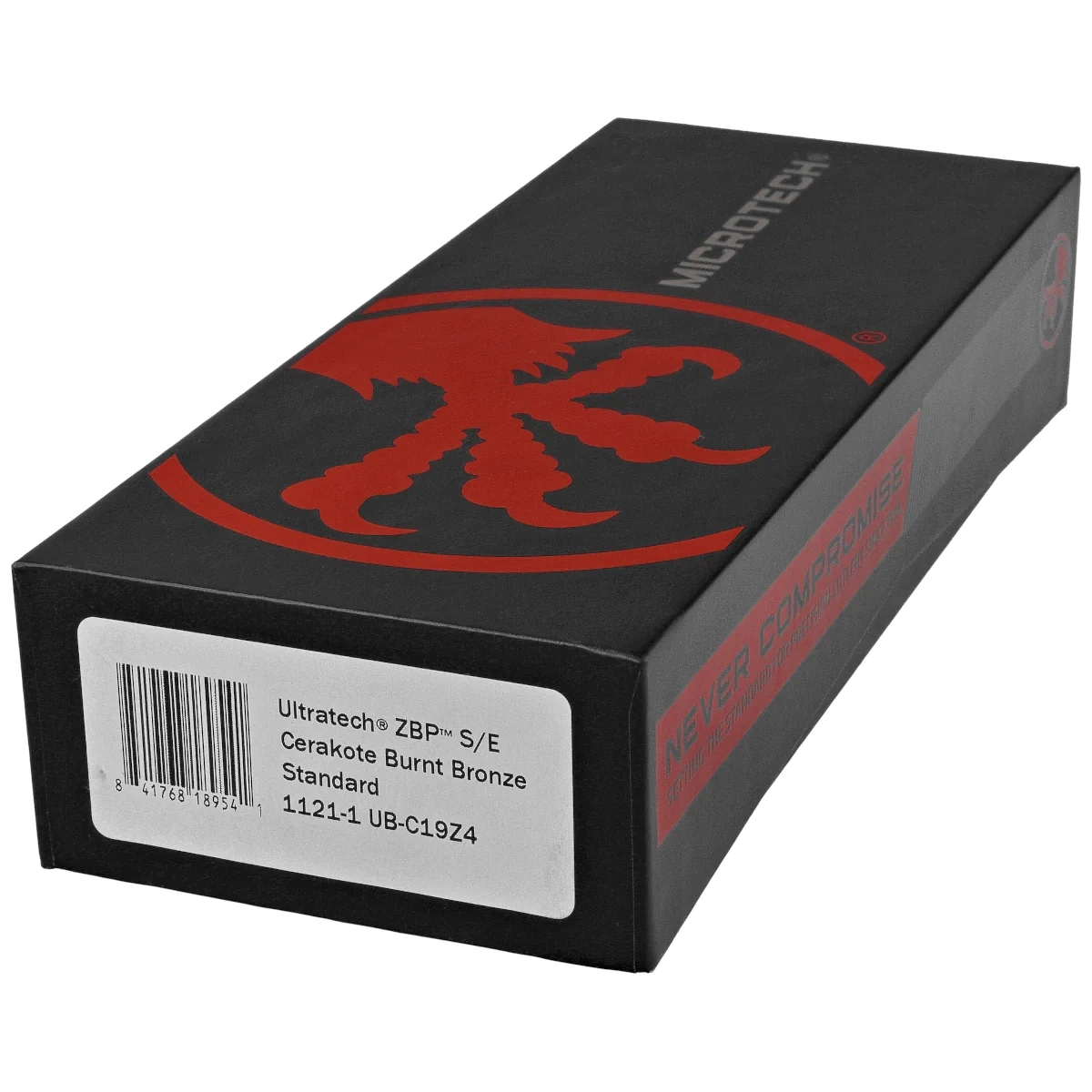 - Ultratech Gen 3 ZBP S/E Cerakote Burnt Bronze Aluminum, Cerakote Burnt Bronze is an upgraded version of Microtech's iconic knife: new glass striker, Crud Kutter system, Dual-Fuel Drive Train and Zero Blade Play™ - no blade play when unfolded.