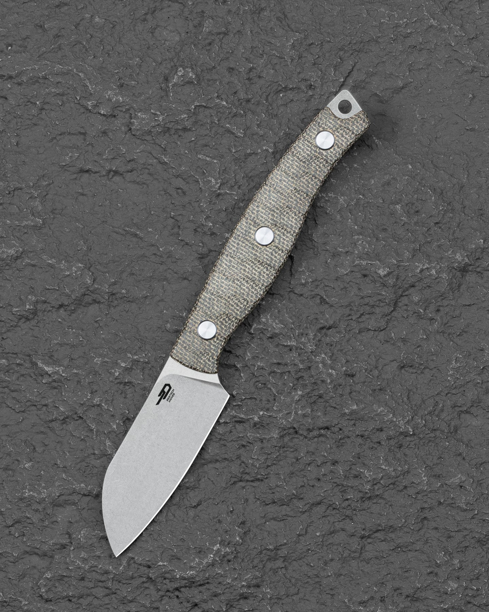Bestech Heidiblacksmith#3 Sheepsfoot Knife Green Canvas Micarta, Stonewashed 14C28N by Heidi (BFK07C)