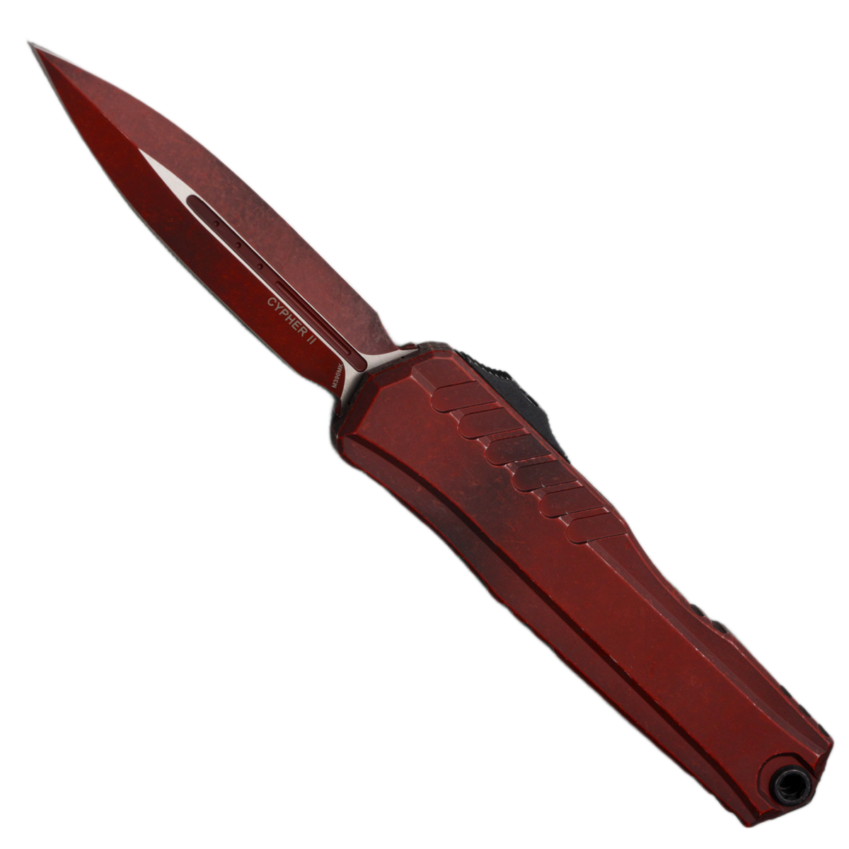 Microtech Cypher II D/E OTF Knife Weathered Crimson Aluminum, Weathered Crimson M390MK by Deryk Munroe i Tony Marfione (1242-1WCM)