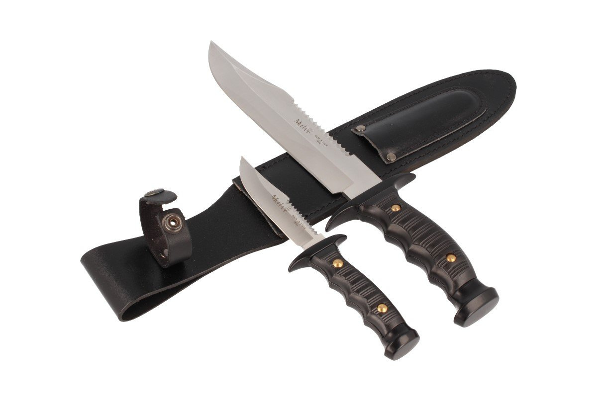 7221-P zestaw dwóch noży (Kangaroo) ze stałym ostrzem - noża głównego (7221) o długości głowni 220 mm oraz noża pomocniczego (7101 MT-Bowie) z klingą 100 mm. Sprawdzają się podczas wypraw survivalowych, myśliwskich, prac domowych - jako noże na co dzień. Wyprodukowane przez hiszpańską firmę Muela z ponad 50-cio letnim doświadczeniem w produkcji noży.