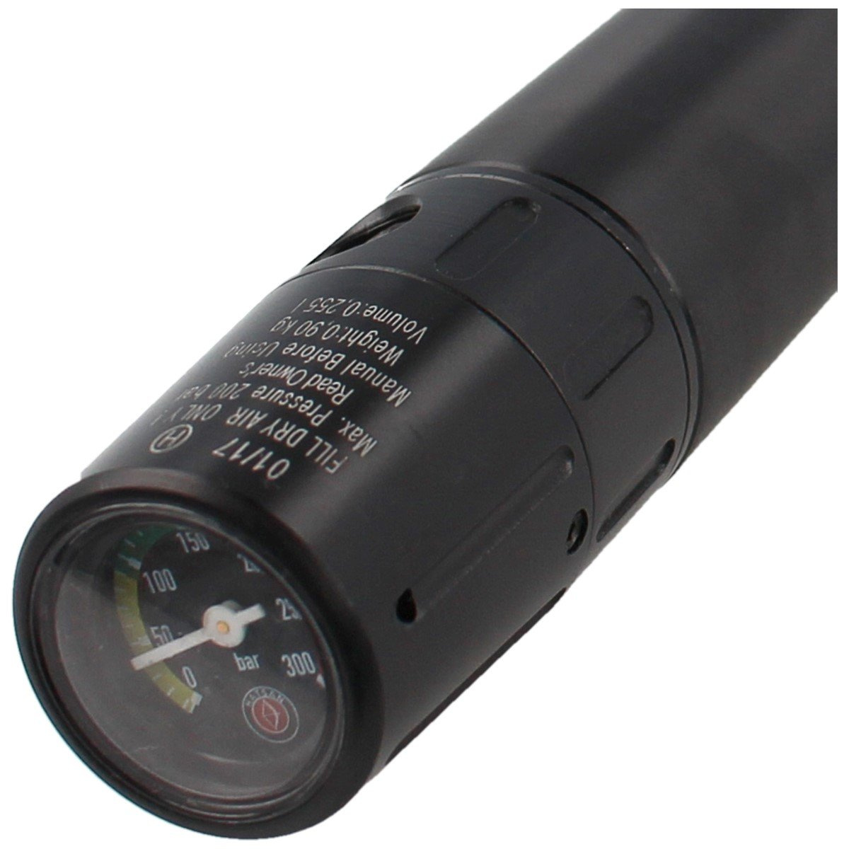 - Aluminiowy zasobnik o pojemności 255cc do wiatrówek PCP firmy Hatsan: BT65, Galatian. Manometr pozwala kontrolować ciśnienie w zbiorniku, a tym samym stopnień jego naładowania. Obrotowa osłona chroni wlot do kartusza przed uszkodzeniem.