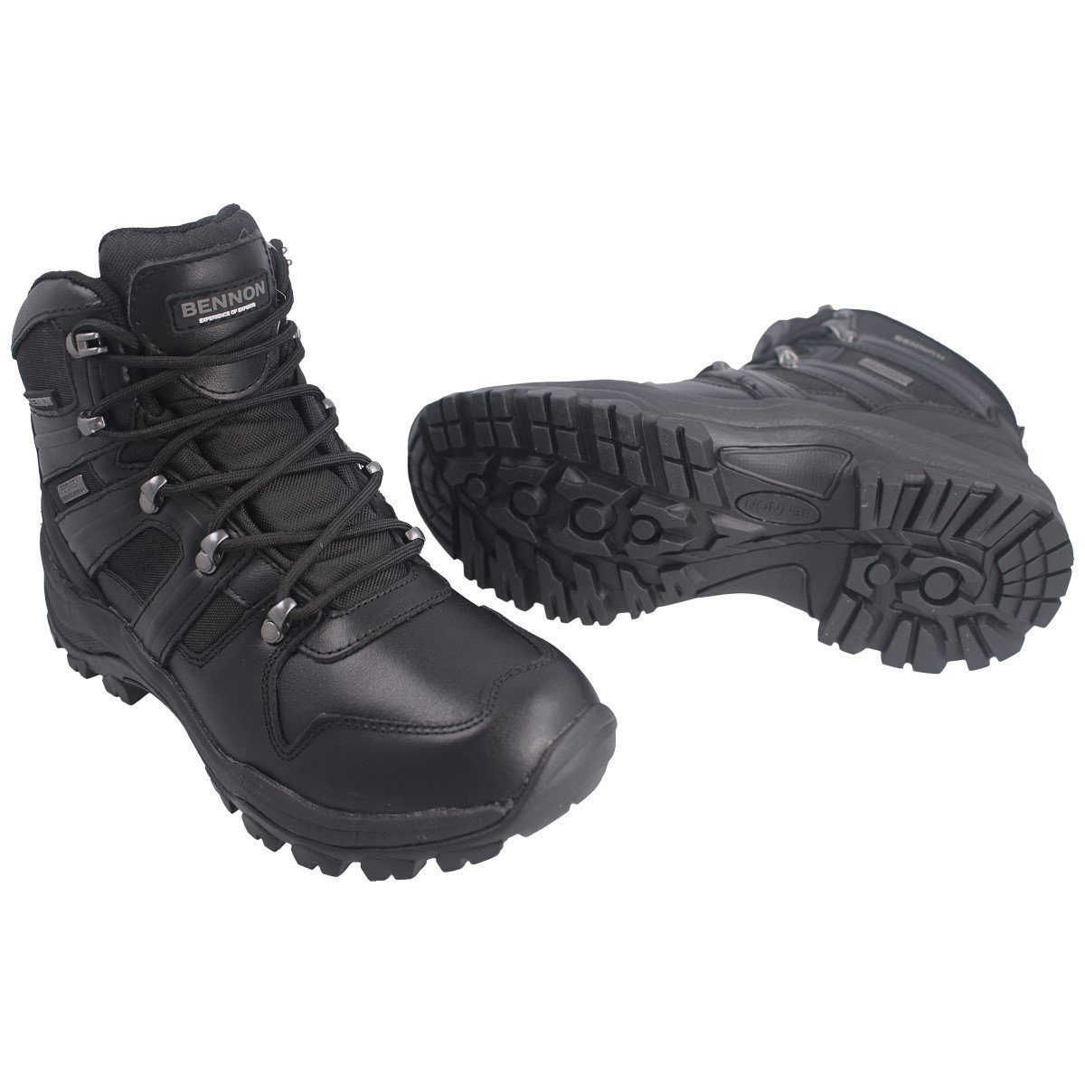 - Bennon Panther High, skórzane trzewiki taktyczno-trekkingowe z membraną REGI-TEX w kolorze black. Lekkie, wygodne trwałe obuwie o wszechstronnym zastosowaniu do pracy i aktywnego wypoczynku. Przeznaczone do długotrwałego chodzenia. Stabilizator pięty TPU.