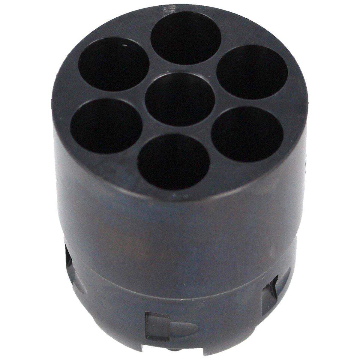 A341, stalowy 6-cio komorowy bęben kapiszonowy (#15 na schemacie) firmy Pietta z kompletem 6-ciu kominków (#16). Pełny nie grawerowany oksydowany na czarno. Przeznaczony do rewolwerów czarnoprochowych 1851 Colt REB Nord Navy w kalibrze .44 z ramą mosiężną.