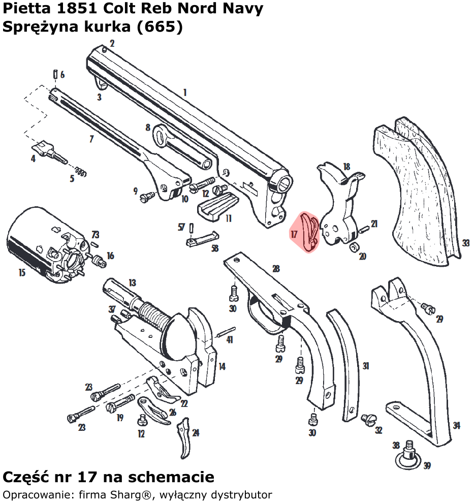 - 665 (serwis) popychacz bębna firmy Pietta do rewolwerów czarnoprochowych 1851 Colt Navy w kalibrach: .36 i .44.