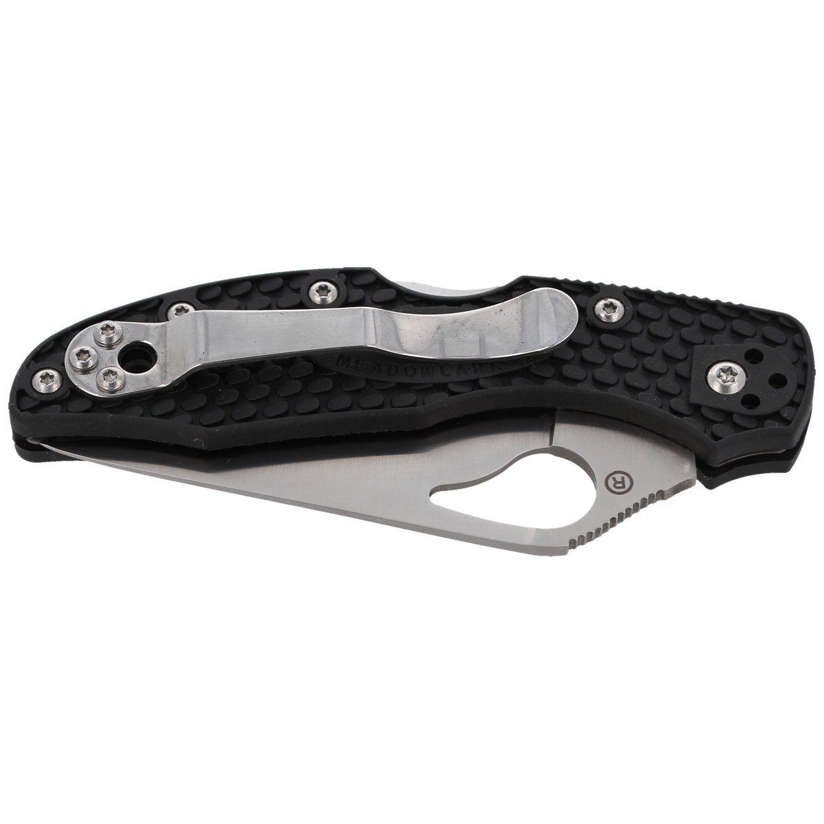 - Spyderco Byrd Meadowlark 2 FRN Black, Plain zainspirowany kultowym Delica lekki folder w przystępnej cenie. Ostrze gładkie ze stali nierdzewnej 8Cr13MoV wyprowadzone szlifem pełnym płaskim. Czarna rękojeść FRN z Bi-Directional Texturing. Blokada Back-Lock