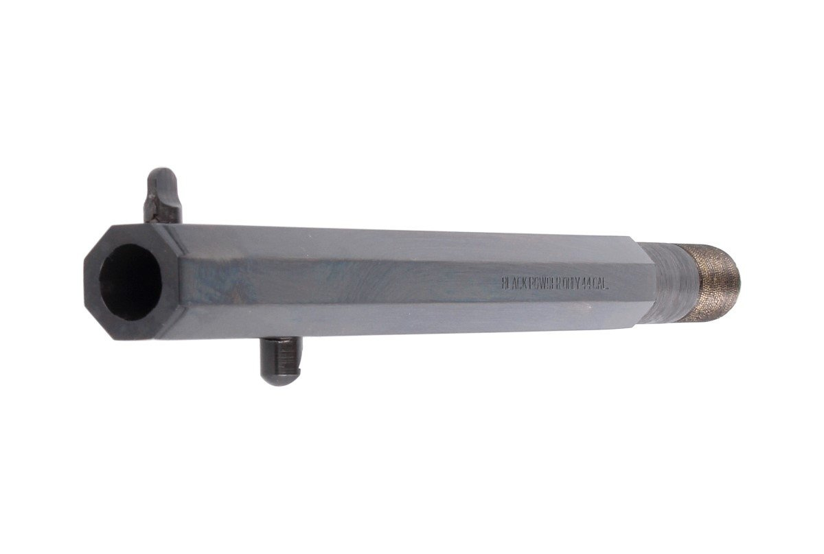 A434/ST 44 (serwis) oksydowana na czarno, 8 calowa oktagonalna lufa gwintowana firmy Pietta. Do rewolwerów czarnoprochowych 1858 Remington New Model Army / Navy w kalibrze .44. Wyposażona w przyrządy celownicze, dovetail sight (#3501) oraz mocowanie dźwigni stempla loading lever retainer (#881).