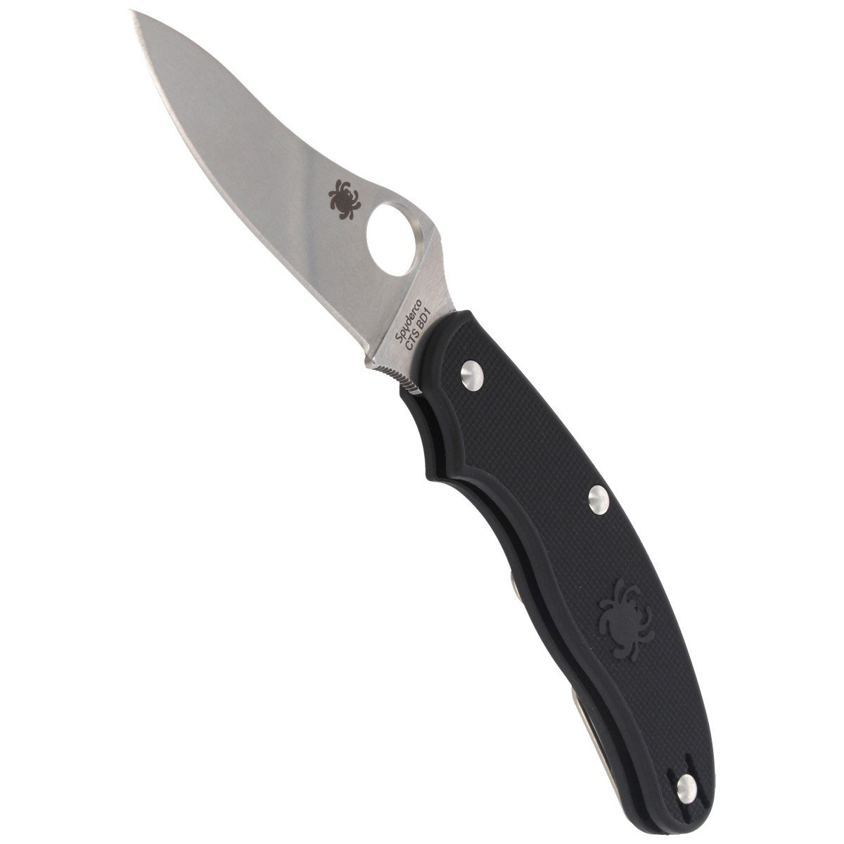 UK Penknife Black FRN Drop Point Plain, Spyderco opracowało brytyjską wersję noża składanego po tym jak Wielka Brytania wprowadziła zakaz noszenia folderów z blokowanymi klingami. Wyposażone w mechanizm Slip-Joint, doskonałe narzędzie do większości prac związanych z cięciem, przyjazne społecznie i legalne w większości krajów. Wyprodukowany w fabryce Spyderco w USA (Golden, Colorado).