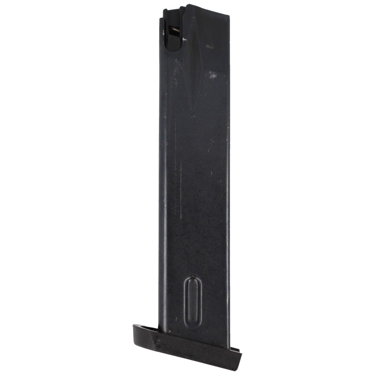 Magazynek - 15-sto (na zamówienie 25-cio) strzałowy, w kal. 9 mm. Wykonany jak w prawdziwym pistolecie ze stali czyni z niego wierną replikę broni palnej. Z uwagi, że jest to amunicja hukowa chwyt broni został dociążony w tylnej części aby zniwelować brak pocisków w nabojach.