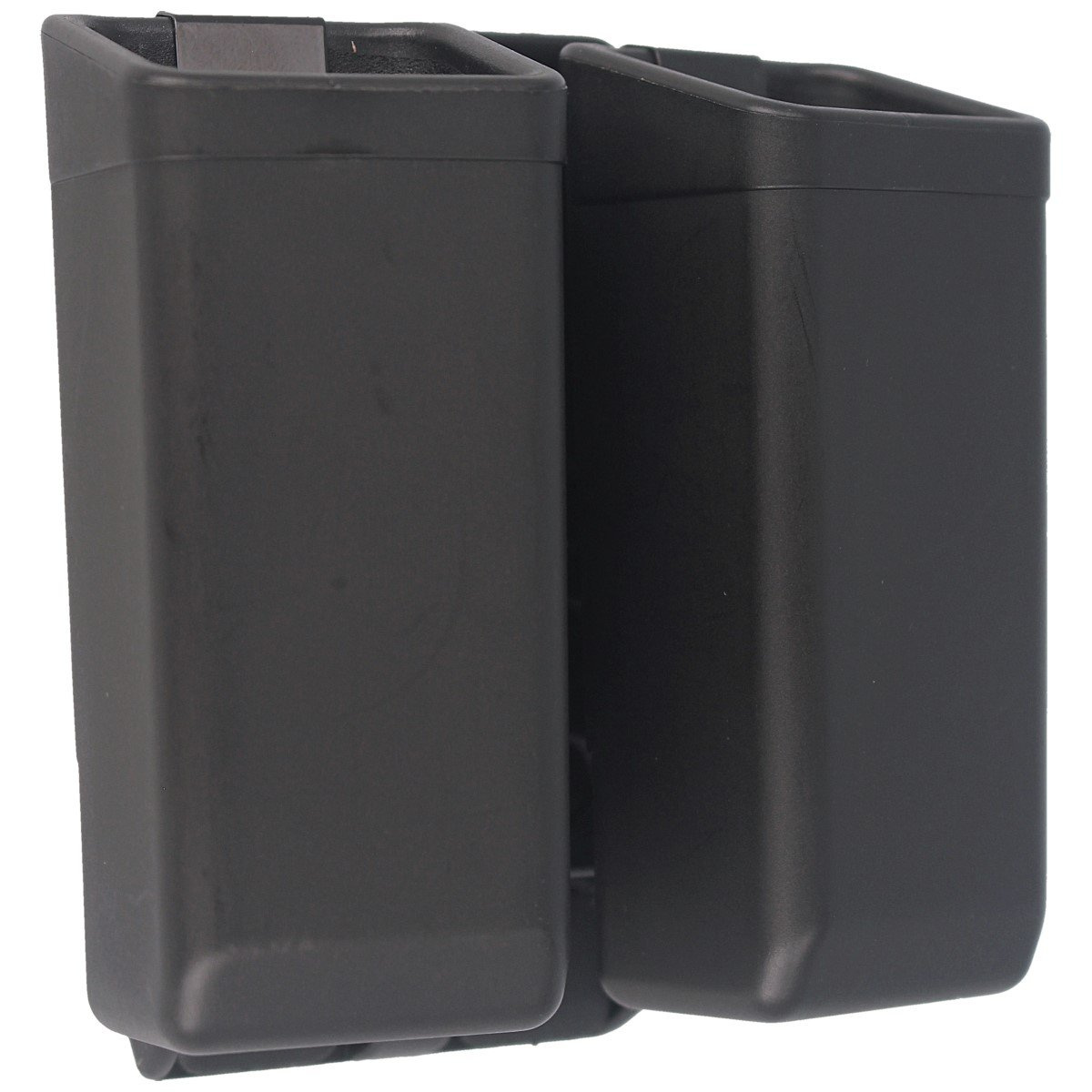 Polimerowa ładownica typu otwartego na dwa magazynki dwurzędowe kal. 9mm/.40/.45 z mocowaniem do pasa typu UBC-04-02 w kolorze black czeskiej firmy ESP. Wewnętrzna sprężyna utrzymuje magazynek, umożliwia szybkie jego wyciągnięcie. Pasuje m.in. Glock, Walther P99, H&K 9mm/.40, Beretta 92/96/M9, Springfield XD, Ruger, Browning HP, SIG Sauer P226/P229, S&W MP9, CZ 75 Compact, Taurus 92/99.