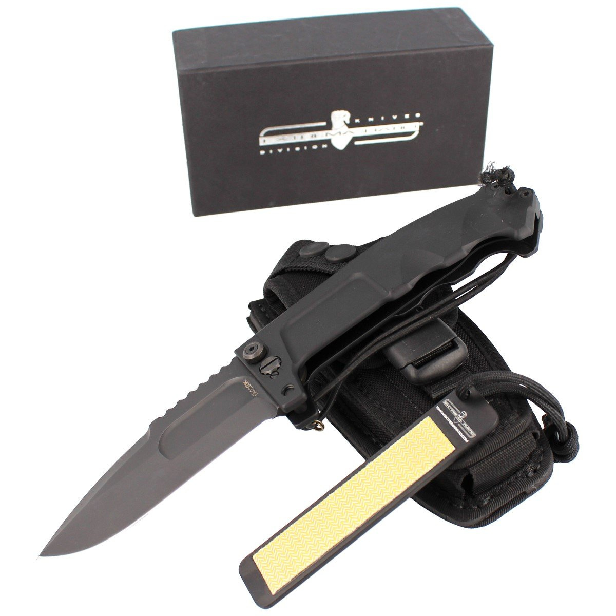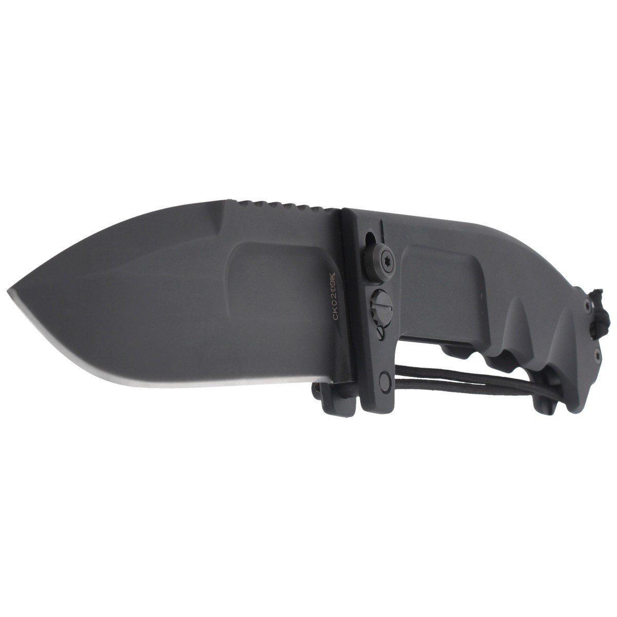 Podwójny system blokady głowni: solidny mechanizm Bolt-Lock oraz dodatkowe zabezpieczenie, stalowy gwintowany sworzeń który należy przełożyć i przykręcić przez dwa otwory znajdujące się w rękojeści. Otwieranie i zamykanie klingi należy wykonywać obiema rękami, aby zminimalizować ryzyko samookaleczenia, ponieważ ostrze, ze względu na swoją wagę, jest prawdziwą gilotyną. Głownia z przesuniętym środkiem ciężkości umożliwia również otwarcie noża zdecydowanym ruchem nadgarstka.