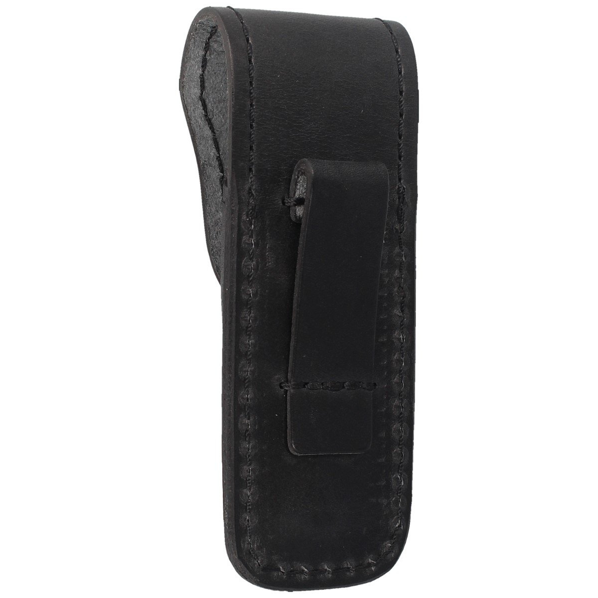 Etui - zapinane na zatrzask typu Prym. Wykonane z wysokiej jakości naturalnej skóry w kolorze czarnym z tłoczonym logo producenta. Pochwa posiada mocowanie do pasa lub oporządzenia umożliwiające przenoszenie noża w pozycji pionowej.