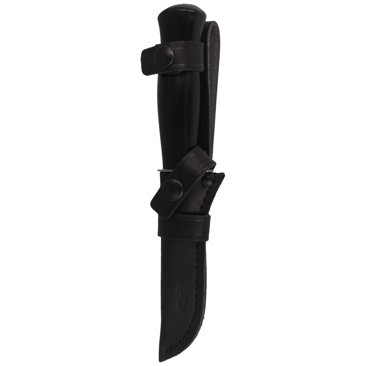 Etui - skórzane w kolorze czarnym, zapinane na dwa zatrzaski. Mocowanie do pasa lub oporządzenia umożliwia noszenie noża w pochwie w pozycji pionowej.