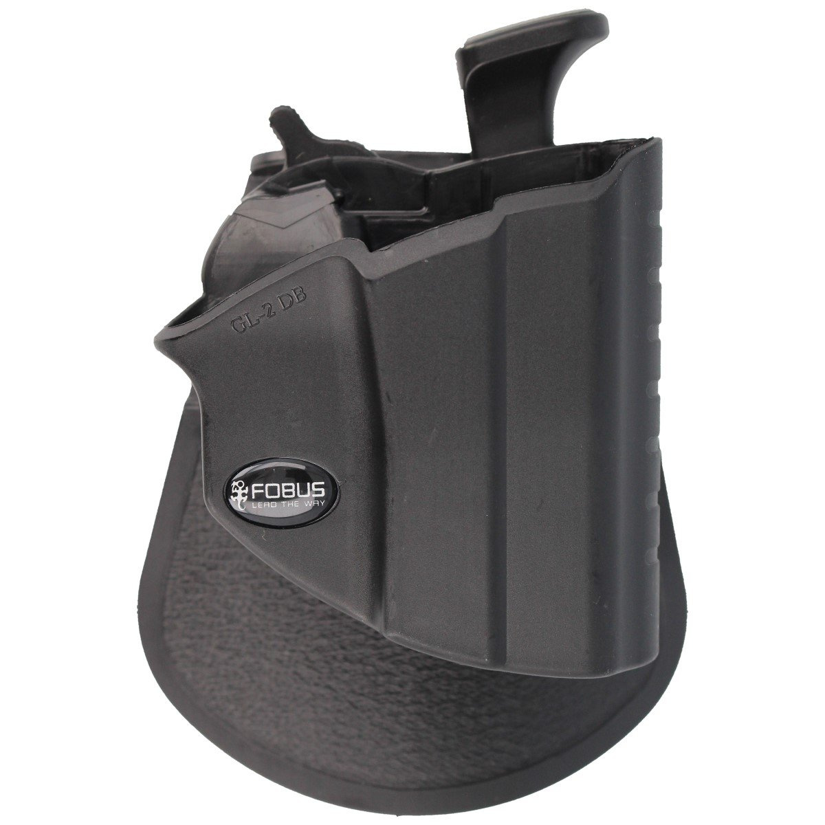 • GL-2 DB (Roto) kabura otwarta Fobus typ DB, prawa. Do pistoletów Glock: 17, 19, 22, 23, 31, 32, 34, 35. Mechanizm Thumb Release (blokada zatrzasku kabłąka) i manualny bezpiecznik Level II Safety rozwiązują problem bezpiecznego przenoszenia broni w kaburze